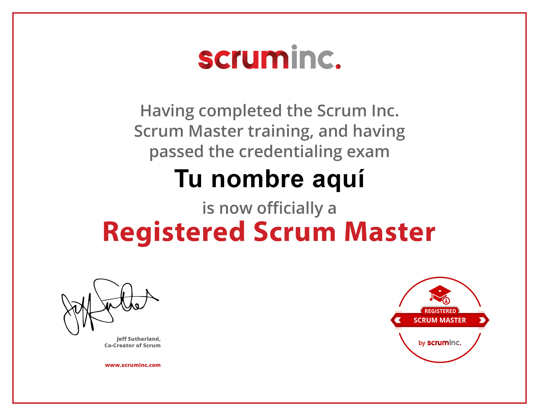 Haz parte de nuestros entrenamientos online en vivo o presencial y prepárate para obtener una acreditación firmada por el Dr. Jeff Sutherland, co creador de Scrum como Registered Scrum Master™ o Registered Product Owner™.